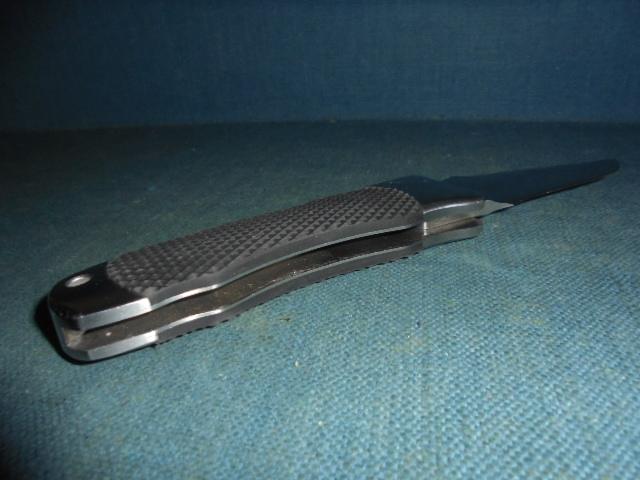 The knife is 8.5" when opened with a steel body/bolsters, and a chequered rubber grip S/n 03219