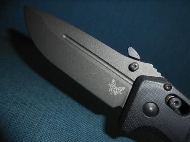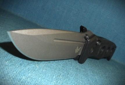 Here is another quality knife with a 3.95" drop-point blade, etched logo BENCHMADE USA 275 on one side, and CPM-CRUWEAR SIBERT DESIGN on the other