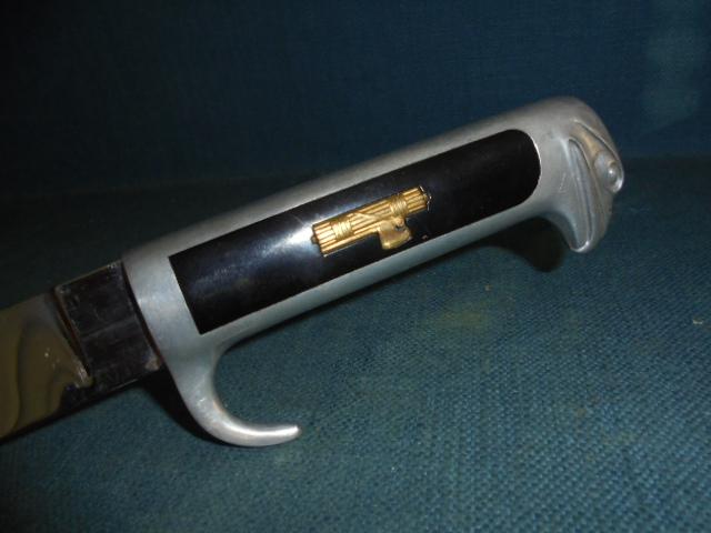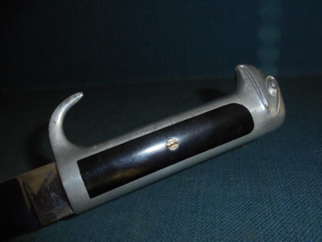 I can't remember the last time I owned one of these daggers, with a 7.75" reversed blade, and 12.25" overall, and an aluminium eagle-headed pommel with a Fascist emblem inset in the grip