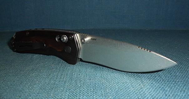 The knife is 6.95" when opened with a hardwood grip S/n 03279
