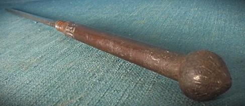 The lower half unscrews to reveal a 10" spike, with the shaft having silver inlay S/n 03285