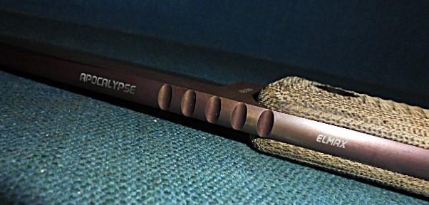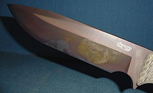 This knife is outstanding with a 6.75" two-toned blade etched trc KNIVES on one side and 03310 on the other, and APOCALYPSE ELMAX on the spine
