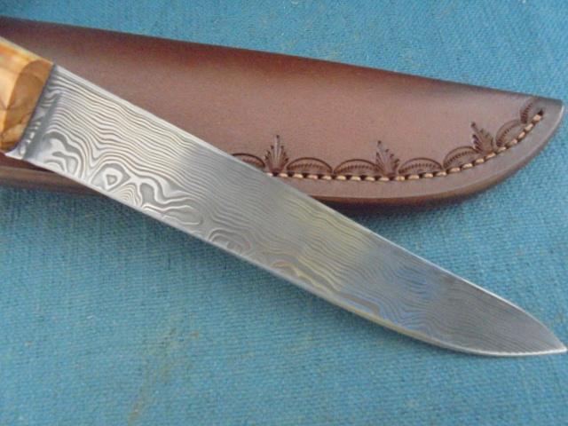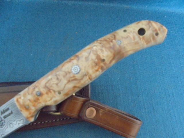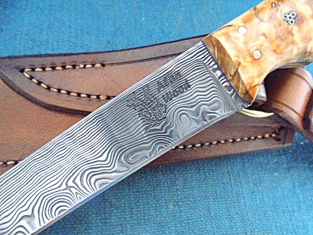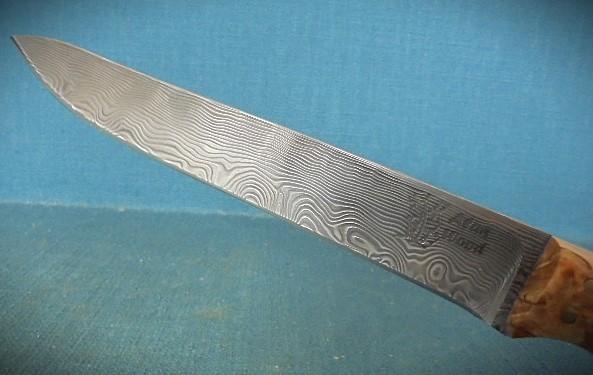 This knife is outstanding, with a 5.75" Damascus blade stamped with the logo Alan Wood, and it is 10.75" overall