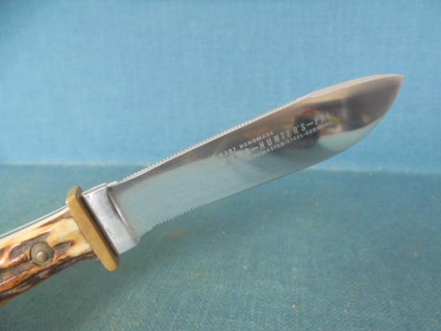 This is a great working knife with a 4" drop-point blade etched 6397 HANDMADE PUMA-HUNTER'S-PAL GENUINE PUMASTER STEEL GERMANY plus a Rockwell stamp