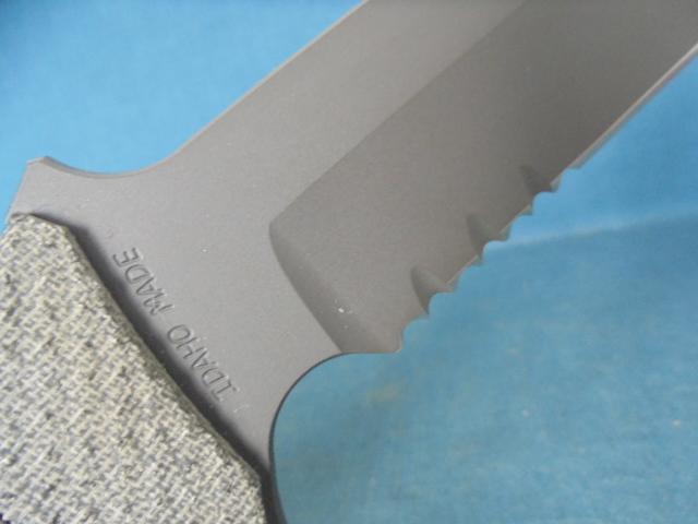 This is the Pacific with its 6.5" clipped blade coated, and with a small serration stamped CR Harsey on one side and IDAHO MADE on the other