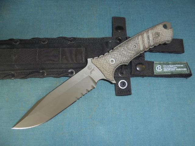 The knife is 12" overall with a black canvas micarta grip, and it comes with a Reeve sheath box and paperwork S/n 03376