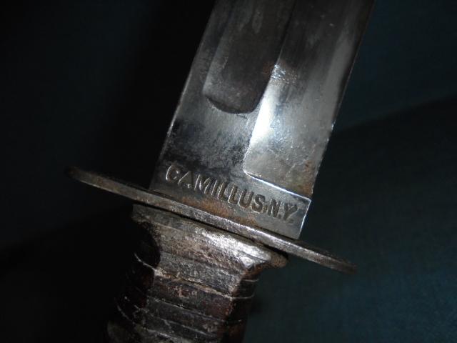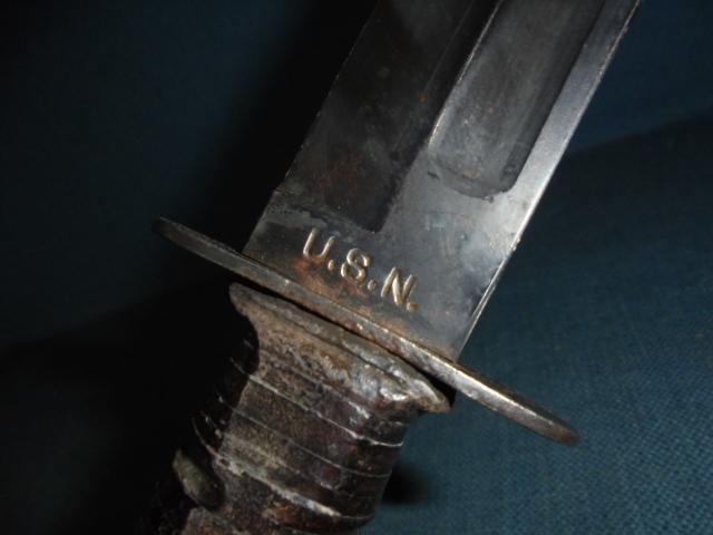 The knife has a 6.75" clipped blade stamped U.S.N. on one side and CAMILLUS, N.Y. on the other
