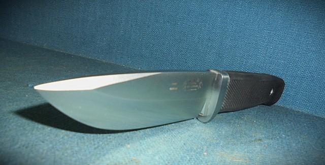 The knife is 8.5" overall with a chequered Thermorun grip, and the knife has its original sheath S/n 03384