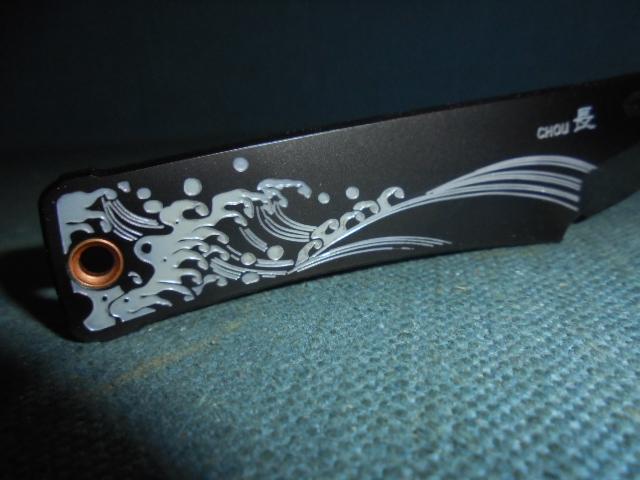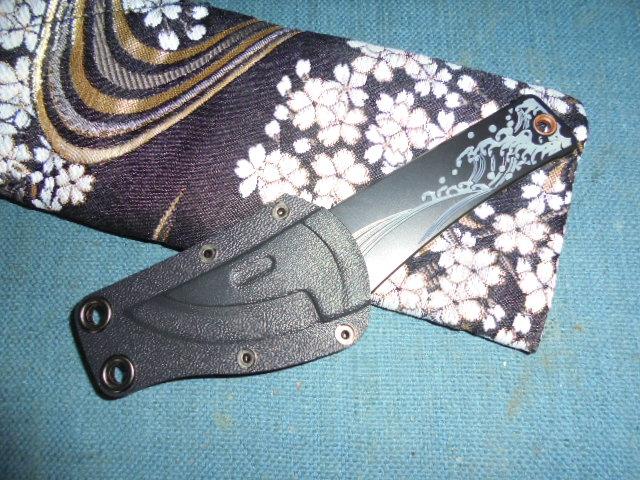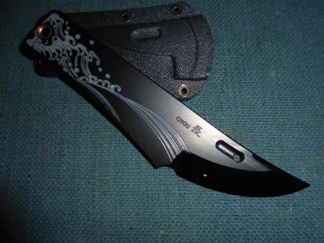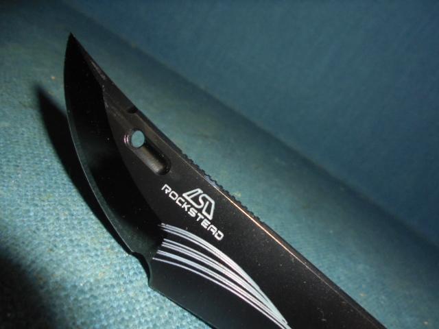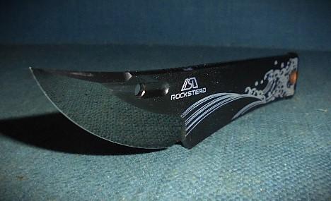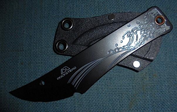This is a great neck knife, which is 4.75" overall and stamped ROCKSTEAD on one side and CHOU on the other, with both sides having a wave effect