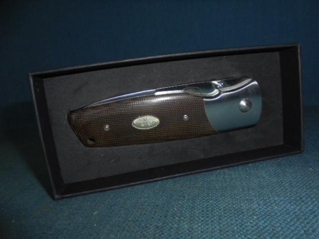 The knife is 8" when open with a steel bolster, frame, and micarta grips with FALLKNIVEN three crowns on one side, and the knife has its original box S/n 03391