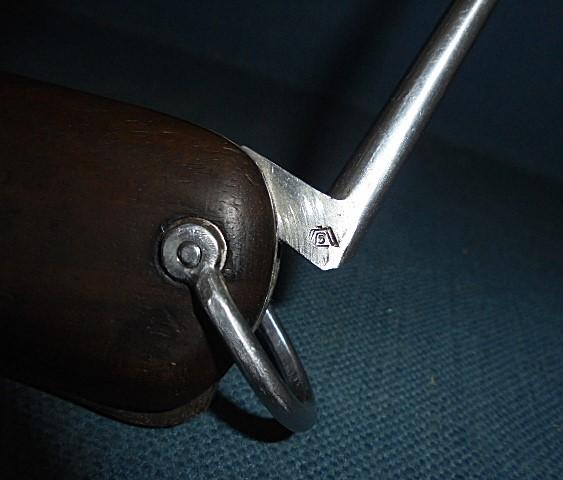 The knife is 10" when opened with a steel frame and hardwood grips. The knife is working perfectly with the catch stamped 1 15, and the spike is stamped with the Luftwaffe acceptance mark S/n 03397