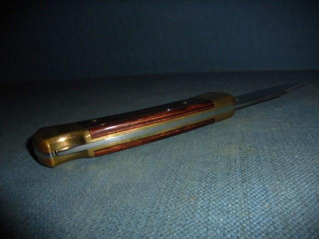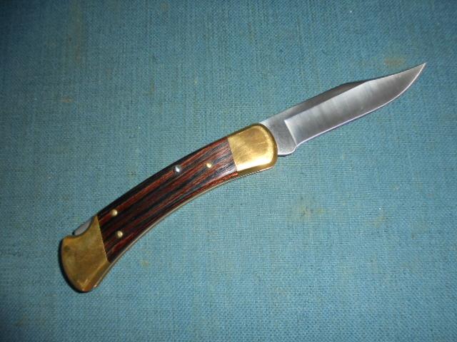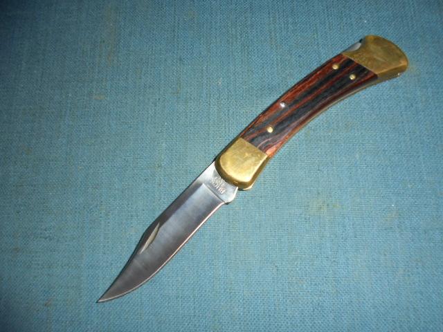 These are great knives with a 3.75" clipped blade stamped BUCK 110 T U.S.A. The knife is 8.5" when open with a brass body bolsters, and hardwood grips S/n 03093 Price includes UK delivery