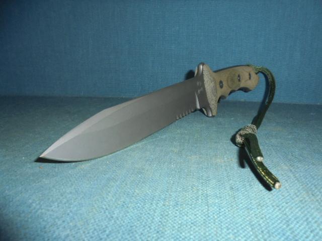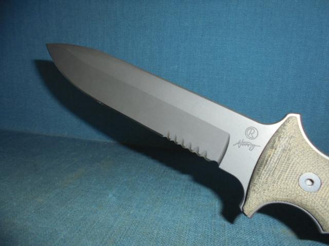 This knife is from the first year of production, 2003, with a 7" coated blade with a small serration and stamped CR Harsey on both sides