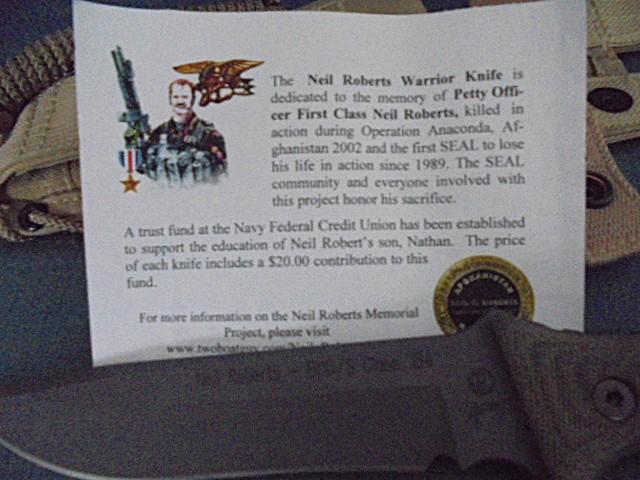 This knife is dedicated to Neil Roberts, who was a Navy SEAL killed in Afghanistan in 2002