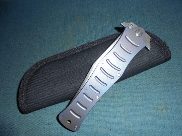The knife has a blued Titanium framelock grip, and it comes with its original zip bag, box, and pamphlet S/n 03121