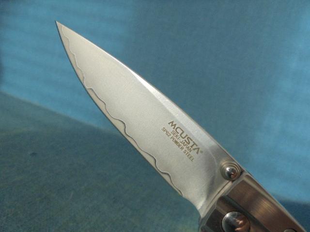 This knife is outstanding with a 2.75" ripple blade etched MCUSTA SEKI-JAPAN SPG2 POWDER STEEL