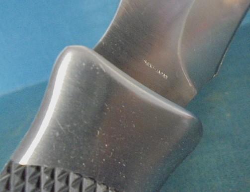 The knife is 8.5" when opened with a steel body/bolsters, and a chequered rubber grip S/n 03219