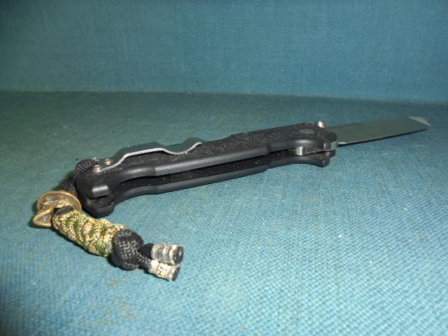 The knife is 9.5" when open, with a black G-10 grip