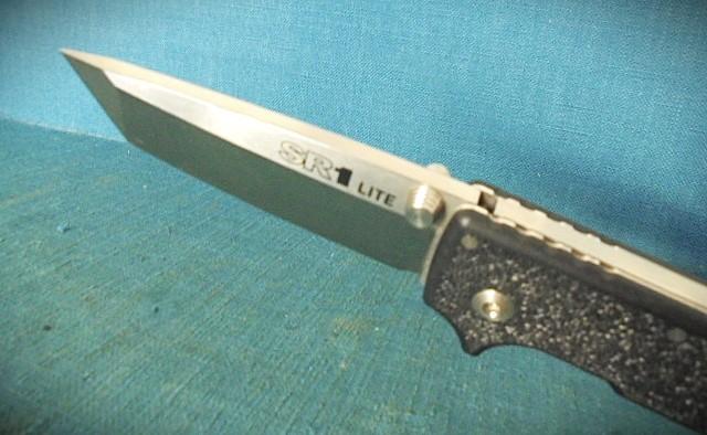 As folders go, this is quite big with a 4" Tanto blade etched SR1 LITE on one side and COLD STEEL 8Cr1MoV TAIWAN on the other