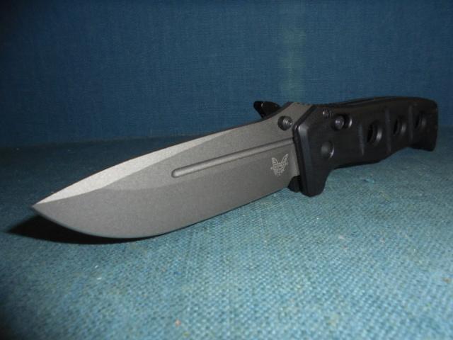 Here is another quality knife with a 3.95" drop-point blade, etched logo BENCHMADE USA 275 on one side, and CPM-CRUWEAR SIBERT DESIGN on the other
