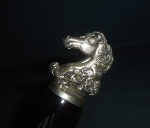 The knife is 18" overall with an ornate horse head crossguard and pommel with a black buffalo horn grip, and it comes with a standard sheath stamped RM on the belt loop S/n 03272