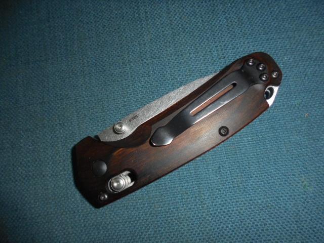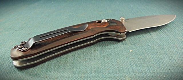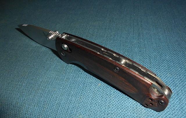 The knife is 6.95" when opened with a hardwood grip S/n 03279