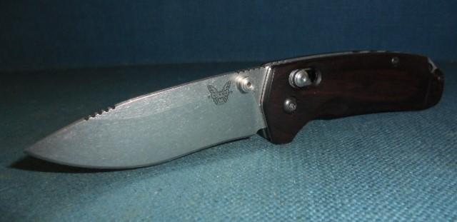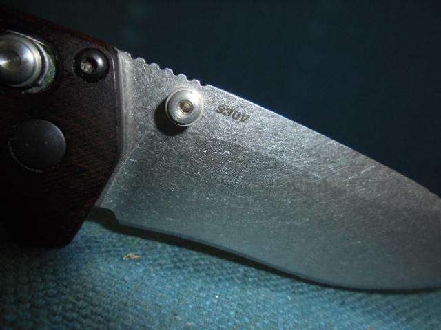 This is the North Fork folder with a 3" satin-finished blade etched BENCHMADE on one side and S30V on the other