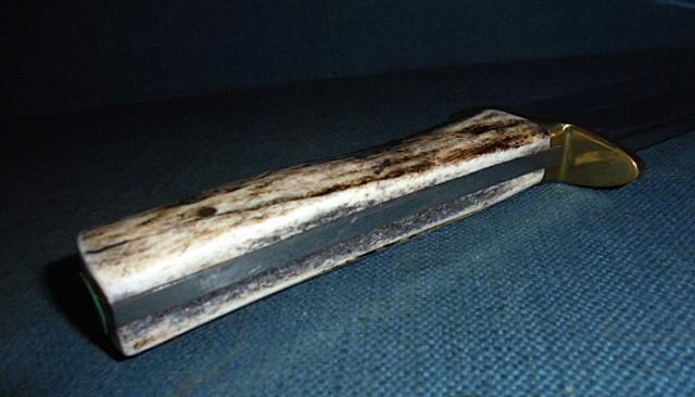 The knife is 13" overall with a brass crossguard and a stag grip and standard sheath S/n 03300