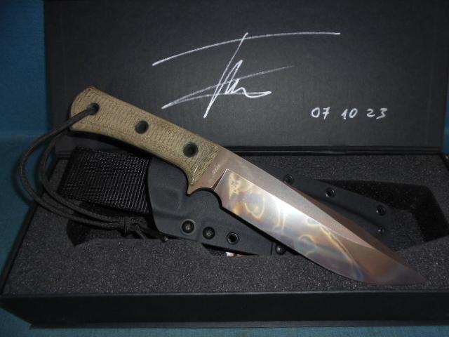 The knife is 12" overall, and it has a Micarta grip, a Kydex sheath, and its original box S/n 03323