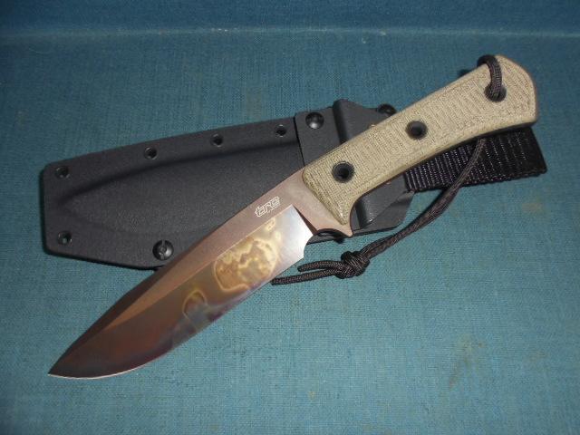 This knife is outstanding with a 6.75" two-toned blade etched trc KNIVES on one side and 03310 on the other, and APOCALYPSE ELMAX on the spine