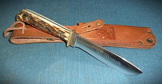 This is a great working knife with a 4" drop-point blade etched 6397 HANDMADE PUMA-HUNTER'S-PAL GENUINE PUMASTER STEEL GERMANY plus a Rockwell stamp