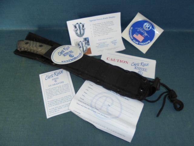 The knife is 12" overall with a black canvas micarta grip, and it comes with a Reeve sheath box and paperwork S/n 03376