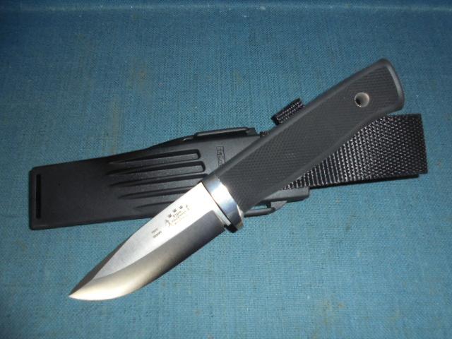The knife is 8.5" overall with a chequered Thermorun grip, and the knife has its original sheath S/n 03384