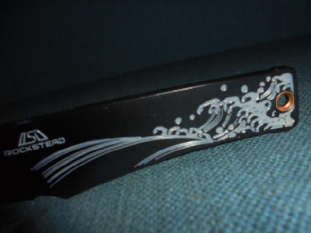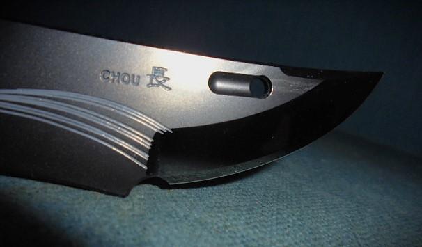 This is a great neck knife, which is 4.75" overall and stamped ROCKSTEAD on one side and CHOU on the other, with both sides having a wave effect