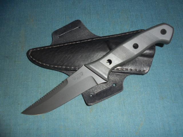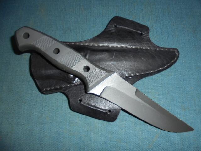 The grip is black micarta, and it comes with a custom-made sheath S/n 03387