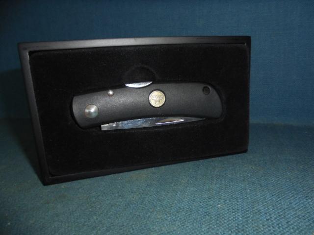 The knife is 6.25" overall with a black plastic grip with three crowns on each side, and it comes with its original box S/n 03390