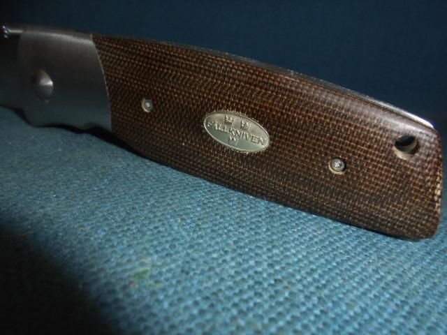 The knife is 8" when open with a steel bolster, frame, and micarta grips with FALLKNIVEN three crowns on one side, and the knife has its original box S/n 03391