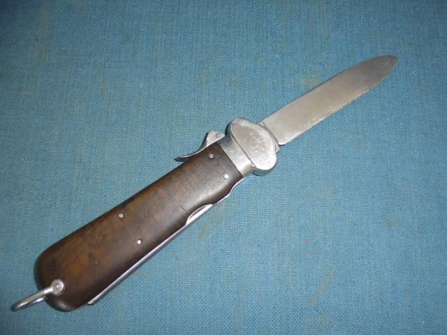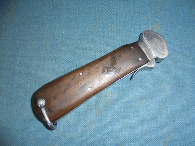 The knife is 10" when opened with a steel frame and hardwood grips. The knife is working perfectly with the catch stamped 1 15, and the spike is stamped with the Luftwaffe acceptance mark S/n 03397
